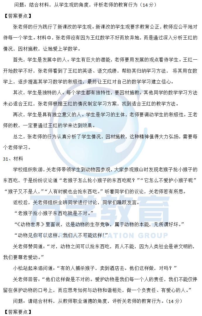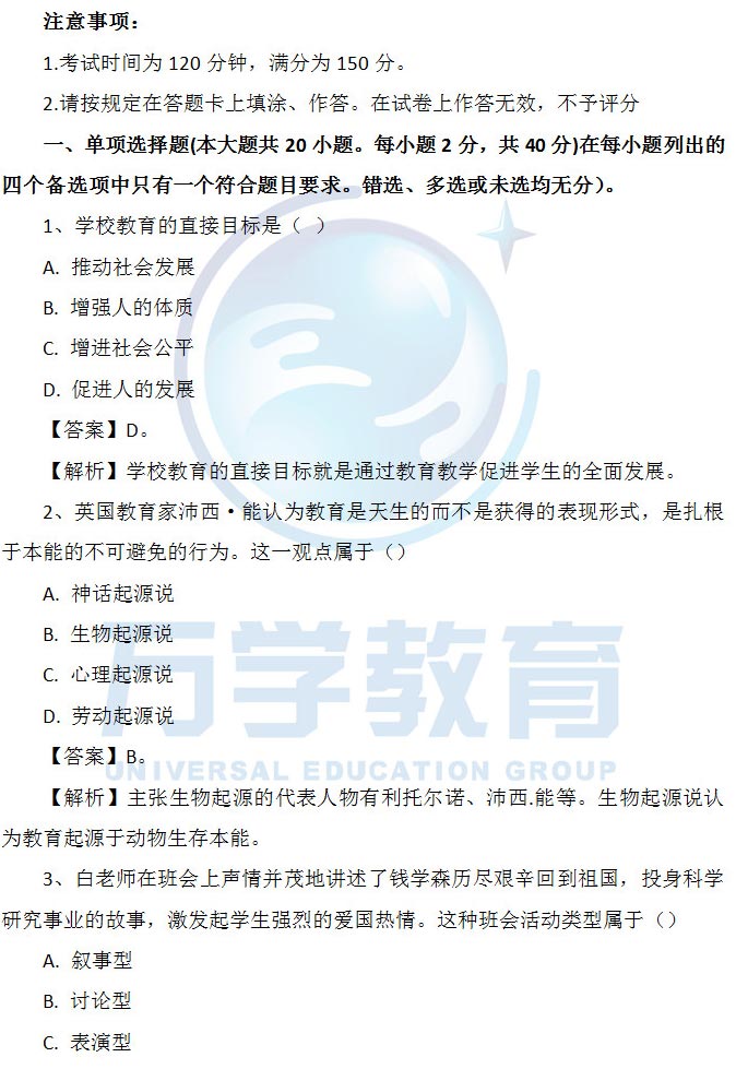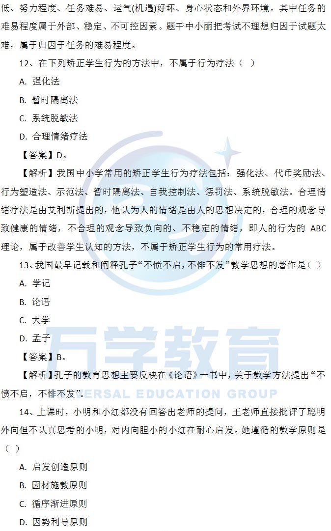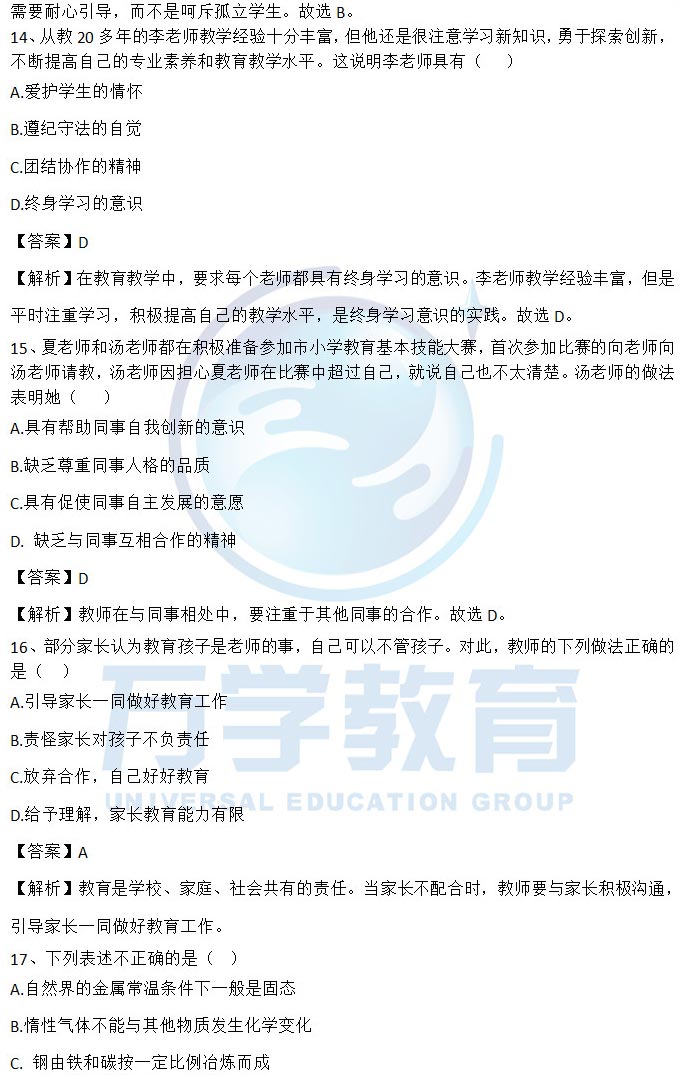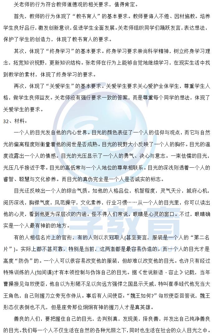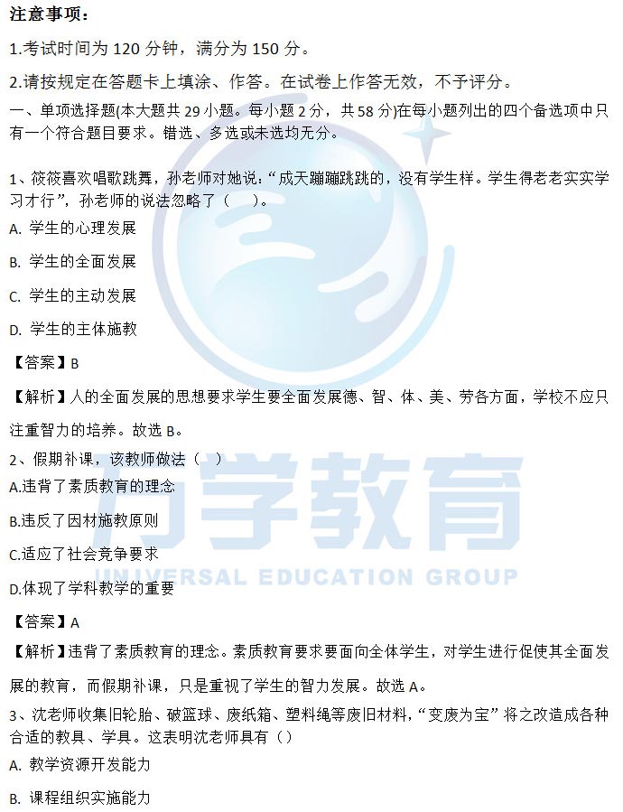2016年下半年中小学教师资格证考试(国考)笔试真题及解析