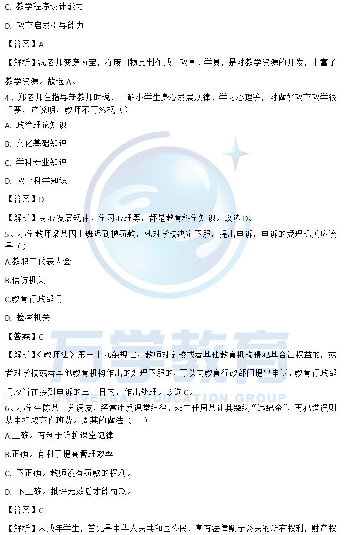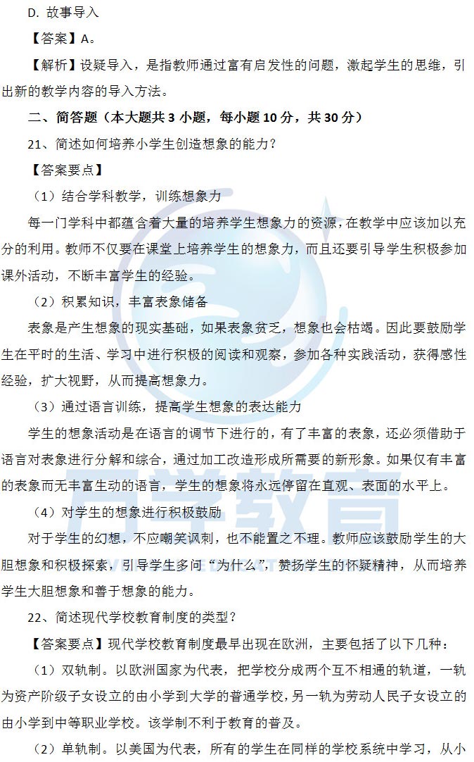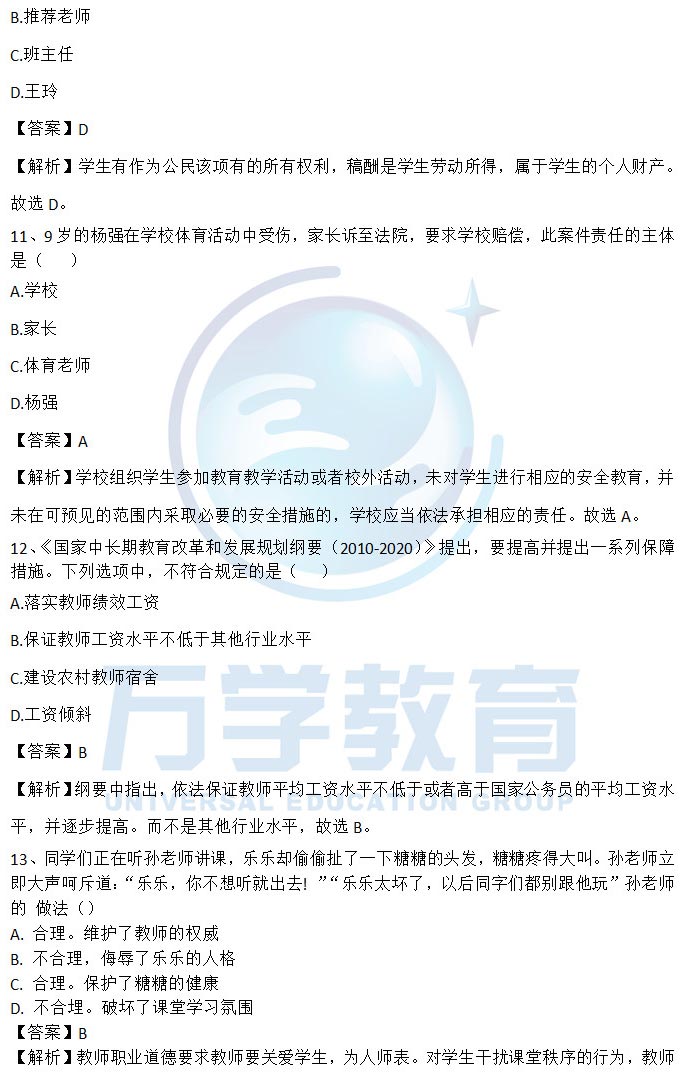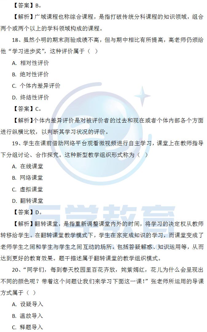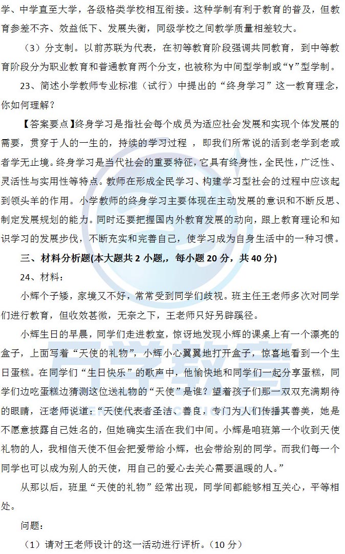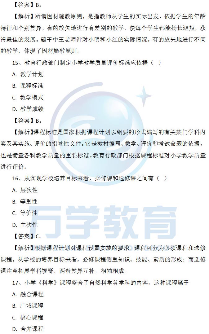2016年下半年中小学教师资格证考试(国考)笔试真题及解析